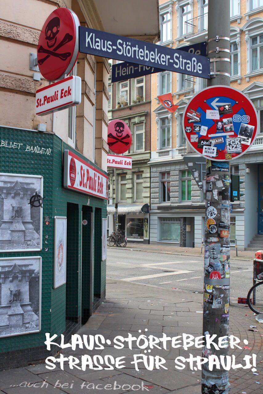 Das dachte sich offenbar auch eine Initiative namens „Klaus-Störtebeker-Straße für St. Pauli“, die seit ein paar Wochen in einer eigenen Facebook-Gruppe für die Umsetzung ihres Titels wirbt und damit eine Menge Wind macht. Die ersten Aufkleber mit erstaunlich authentisch wirkender Beschilderung zieren bereits jenes vermeintliche Zweitheimatviertel des Likedeeler genannten Freibeuters, der den vergleichsweise unterprivilegierten Anwohnern mit seinem historisch überlieferten Hang zum Teilen naturgemäß etwas näher steht als der niederländische Kriegsschiffhauptmann in Diensten raffgieriger Pfeffersäcke.
